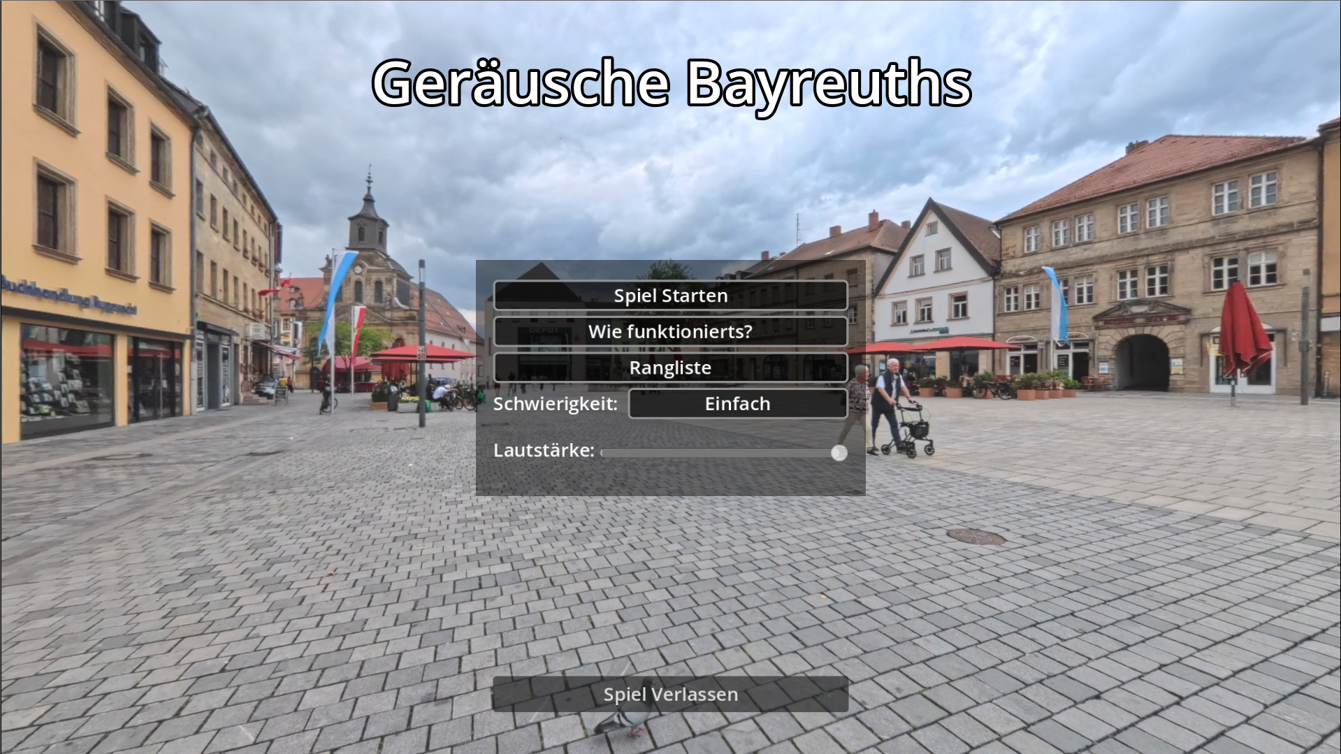 Geräusche Bayreuths ist eine Art GeoGuessr nur mit Geräuschen. Anhand von Soundscapes muss man den richtigen Ort innerhalb Bayreuths auswählen.